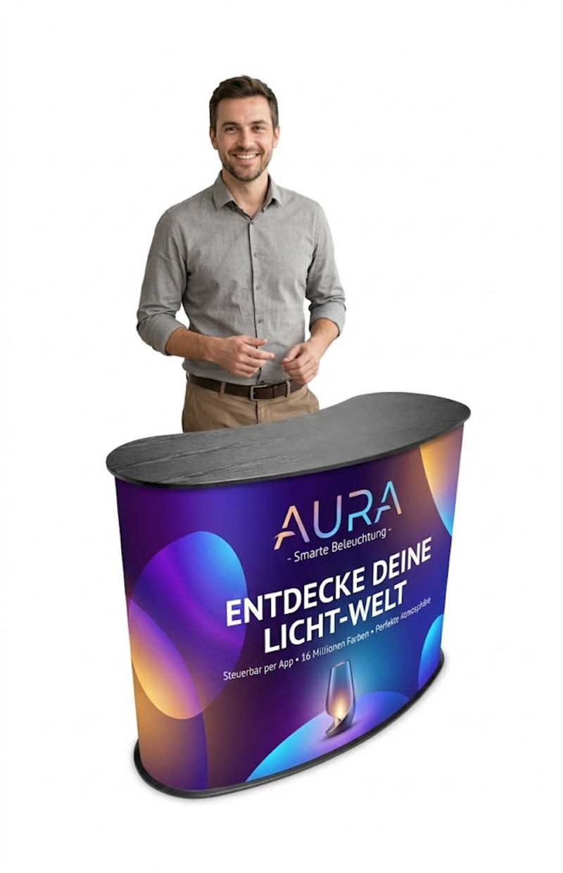 Der Messecounter BigEasy ist perfekt geeignet für Ihre Beratungsgespräche und Empfangsbereiche. Er sichert Ihnen maximale Aufmerksamkeit durch sein großzügiges Format. Trotz seiner Größe ist er mit einem Gewicht von nur 16 kg noch mobil und leicht zu handhaben.