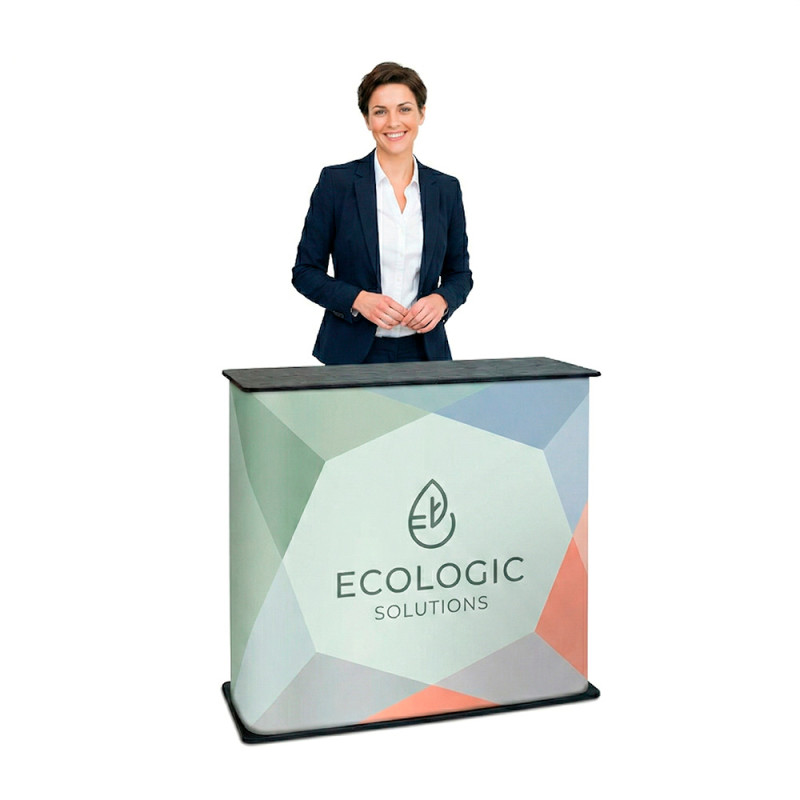 Der Messecounter Easy Square bietet eine ausgezeichnete, flache und große Oberfläche zur optimalen Präsentation Ihres Unternehmens. Das quadratische Design überzeugt und ist perfekt für den Einsatz in geschlossenen Räumen.