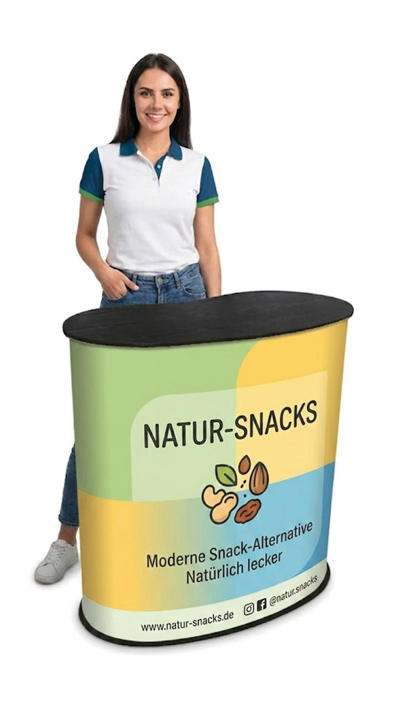 Der leicht gebogene Messecounter Easy ist die perfekte Lösung für Ihre mobilen Marketingmaßnahmen. Mit einem geringen Gewicht von nur 12 kg und einer effizienten Konstruktion ist er ideal für den häufigen Einsatz konzipiert.